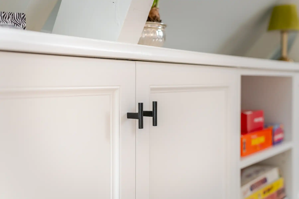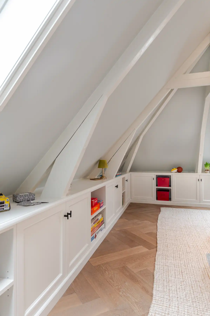 In een karakteristiek huis uit 1880 in Bussum kreeg de zolderverdieping met schuine dakvlakken onlangs een compleet nieuwe uitstraling. Eveline en Dirk kozen voor op maat gemaakte inbouwkasten die niet alleen praktisch zijn, maar ook recht doen aan het oude pand. Samen met Koen van Schoonhoven Keukens & Interieur realiseerden zij inbouwkasten in Bussum die tot in detail kloppen.